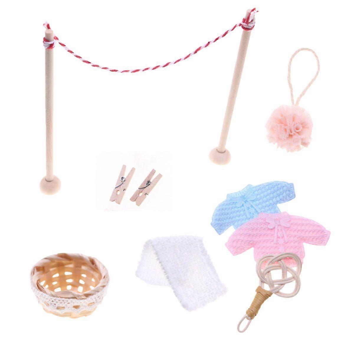 1 Set Miniature Clothesline Accessories For Home Decor Tiny Clothesline Model For Indoor And Outdoor Use Dollhouse Laundry Set
