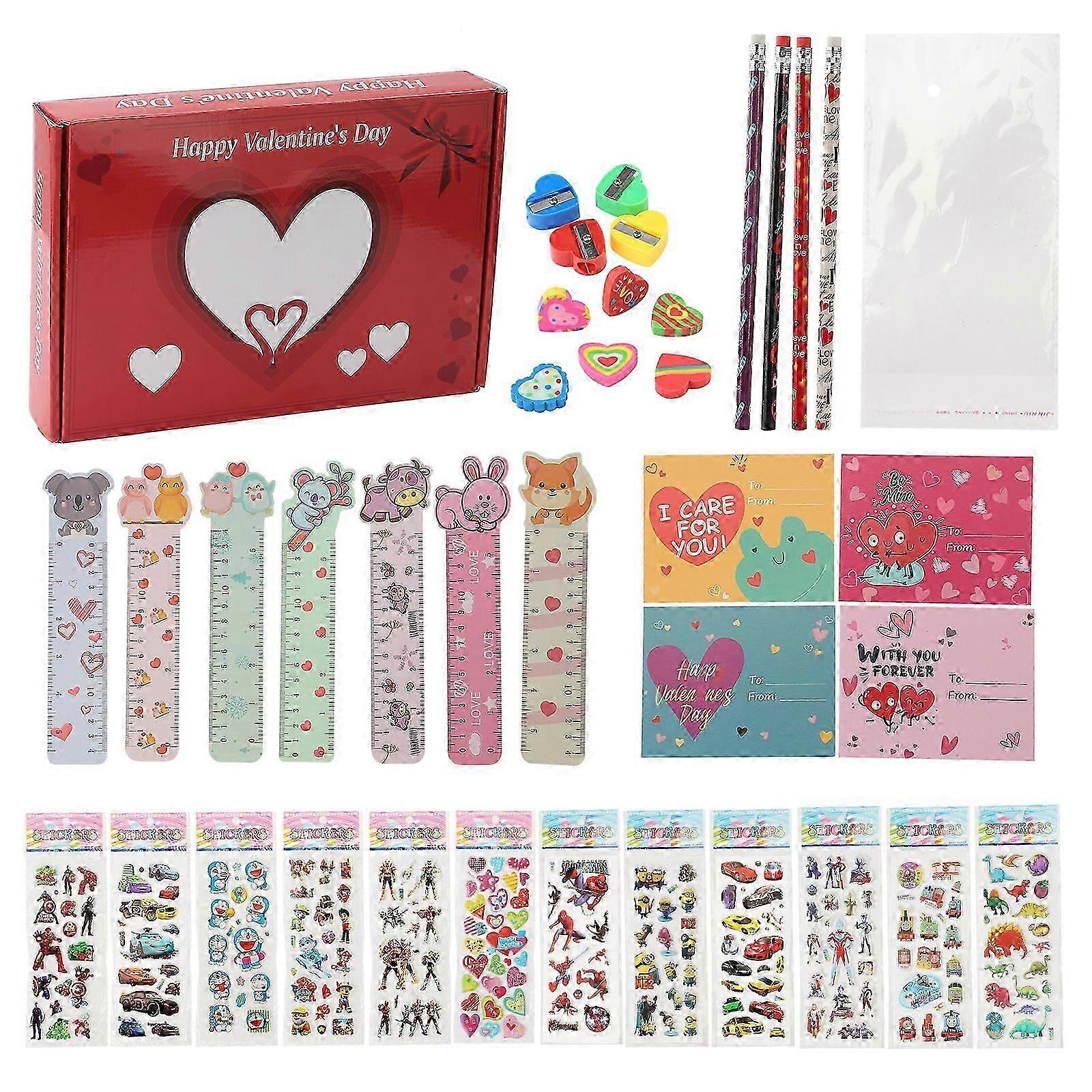 1Set Stationery Valentine's Day Set Ruler Pencil Classmates Kids Students Multicolor Gift