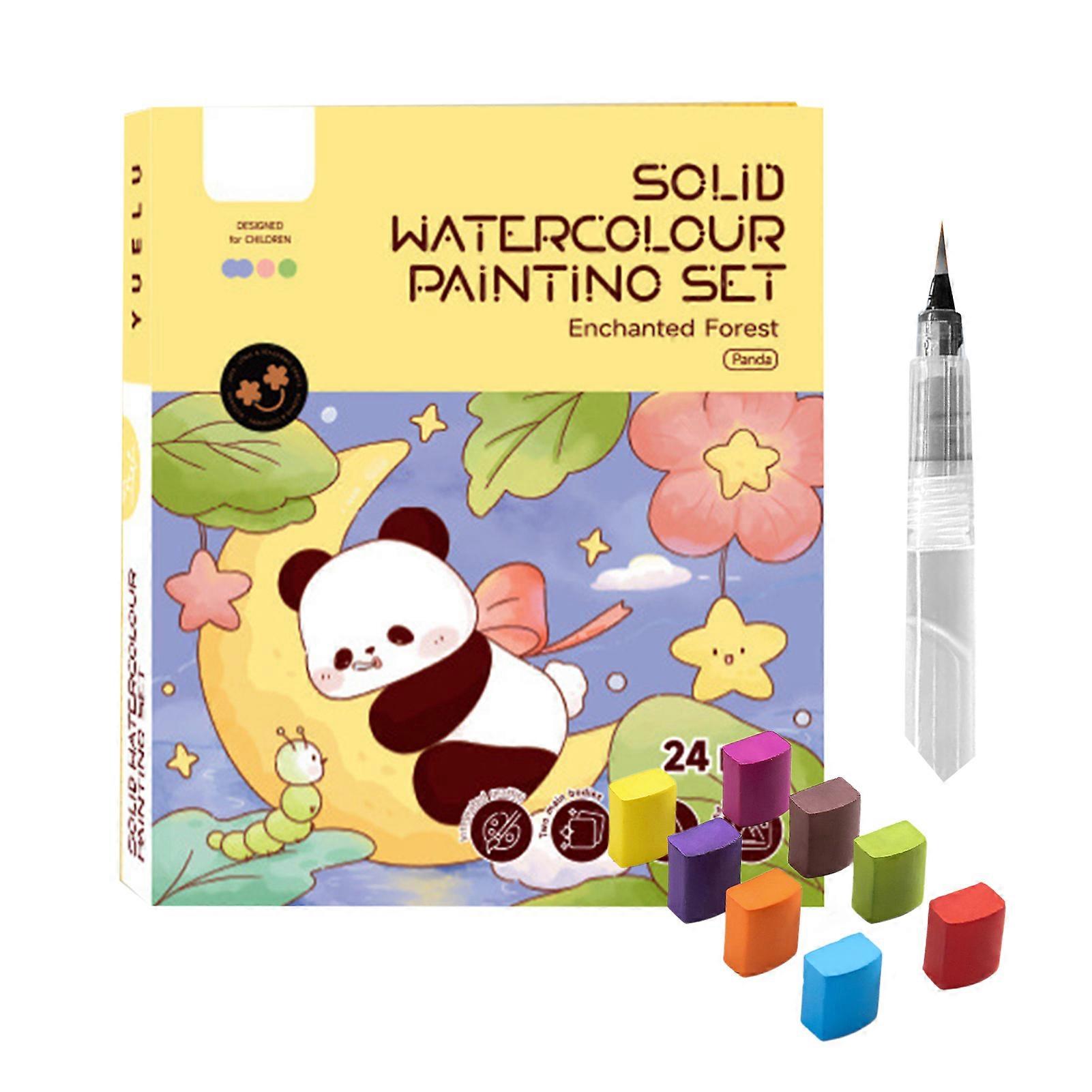 1 Set Watercolor Coloring Book with Pigment Paintbrush Educational Portable Cartoon Panda Bunny Watercolor Painting Kit Toddlers Boys Girls Gift