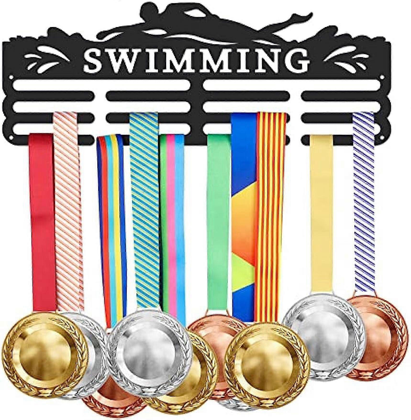 1set Swimming Medal Hanger Display Holder Sport Iron Hook Rack Frame Medal Ribbon Wall Mounted Award Holder