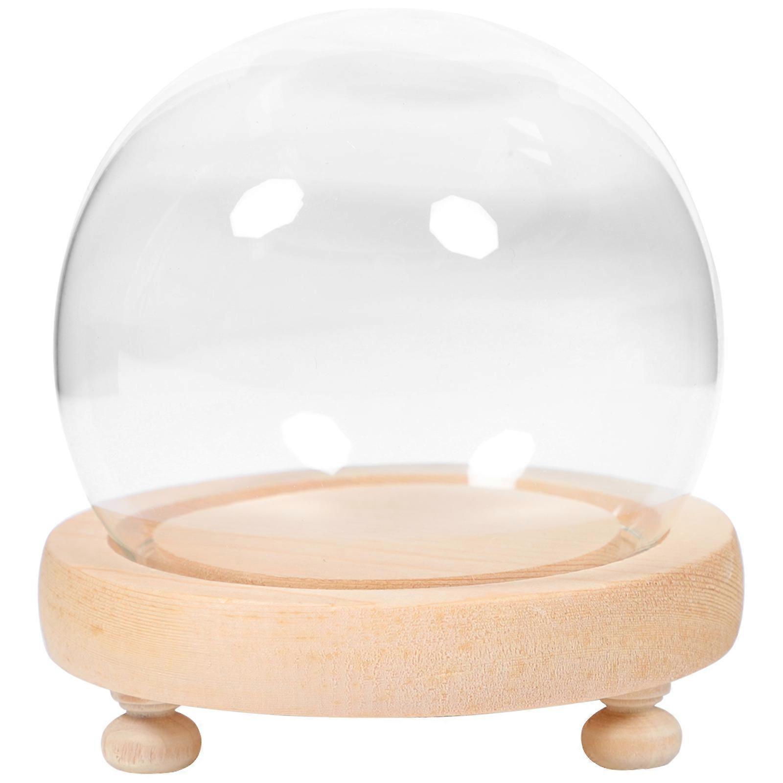1 Set Eternal Flower Glass Cover Dust-proof Preserved Flower Cover with Wooden Base