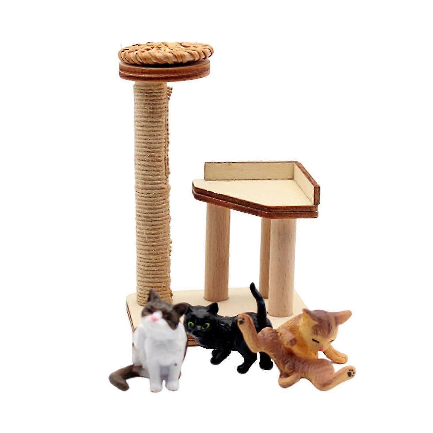 1 Set Cat Model Miniature Wooden Cat Climbing Frame Model Small Cat Figurines for Dollhouse