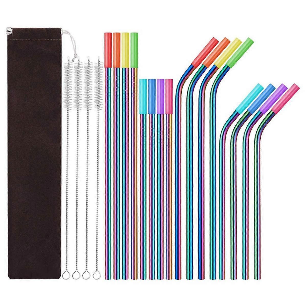 1 Set- Stainless Steel Straw Set Silicone Mouth Portable Metal Straw Brush, Multicolor