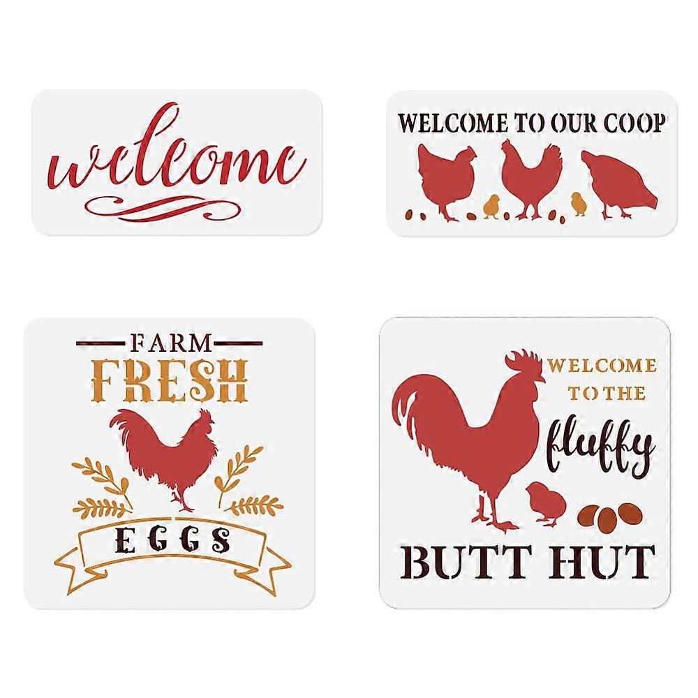 1Set 4Pcs 4 Styles Farm Theme PET Hollow Out Drawing Painting Stencils for DIY Scrapbook Photo Album Mixed Shapes 150~300x300mm 1pc/style