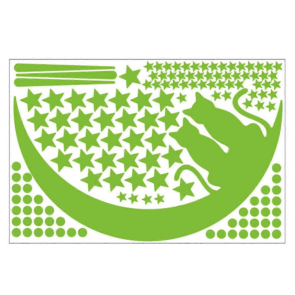 1 Set 140pcs Couple Cat Star Meteor Round Dot Moon Glow in Dark Stickers (Green)