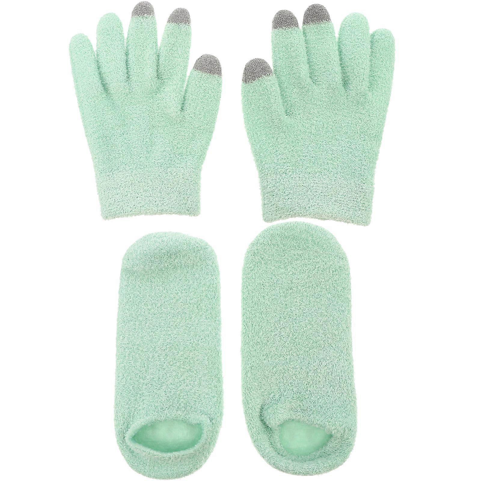 Description The set of items includes one pair of unisex beauty spa treatment gloves and one pair of unisex beauty spa sock. You can use the Gel gloves or socks alone or in conjunction with moisturizing and whitening cream for creating better effect, and each use time is about 20-30 minutes. With comfortable to wear and excellent beauty effect, therefore, the SPA gel socks & gloves set can act as a thoughtful gift for your families or friends. Features -Material: Feather yarn, spandex, moisturizing gel - Constantly moisturize skin back to a natural and healthy look, nourish the smooth, and increase flexibility. - Designed to moisturize the skins and make your hands and feet look fresh and nourishing. - Work continuously to soften and whiten hands and feet. - Can use alone or in conjunction with moisturizing and whitening cream, for creating better effect. - Each use time recommended is about 20-30 minutes.Package list: 1 x pair of socks 1 x pair of gloves