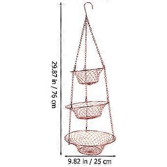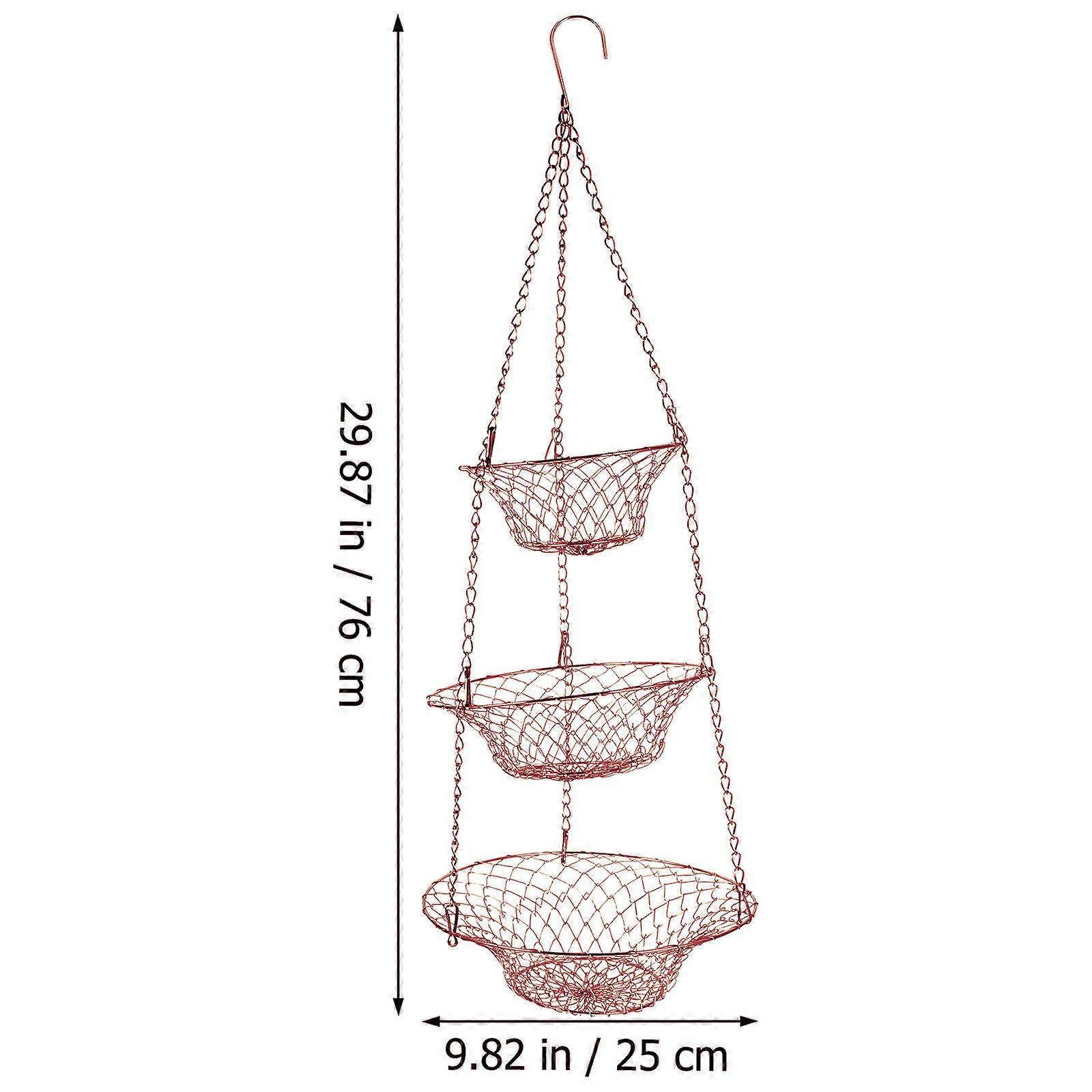 1 Set 3-tier Flower Basket Wire Hanging Fruit Basket Folding Hanging Basket