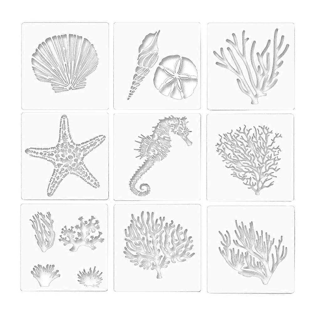 1 Set 9pcs Hawaiian Ocean Series Hollow Out Painting Templates (Transparent)
