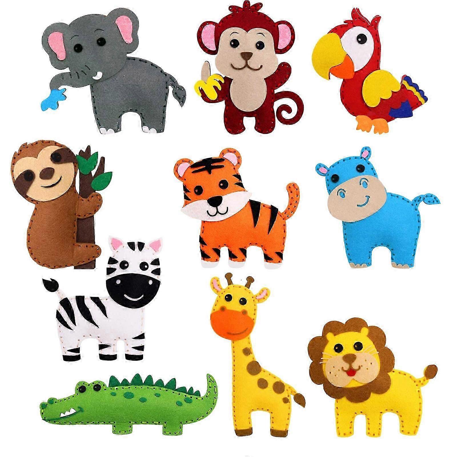 1 Set DIY Felt Cloth Sewing Kit Jungle Animals Crafting Toys for Kids Adults
