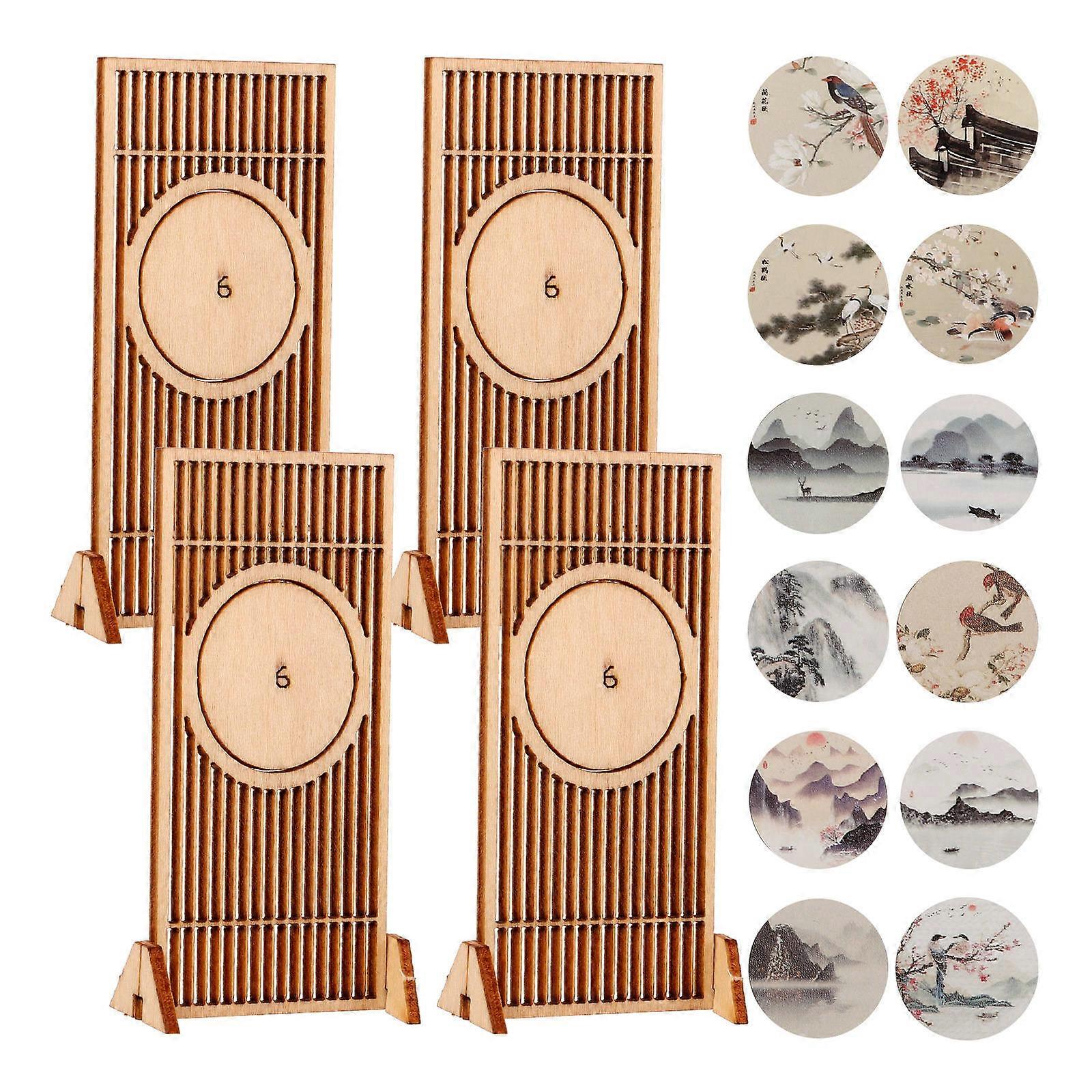 1 Set DIY Chinese Style Mini Folding Screen Model Kit, Vintage Room Divider for Miniature House Decor, Creative Craft for Table Landscaping &