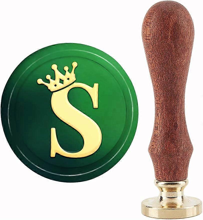 1Set S Wax Seal Stamp Crown Sealing Wax Stamps 30mm Retro Vintage Removable Brass Stamp Head with Wood Handle