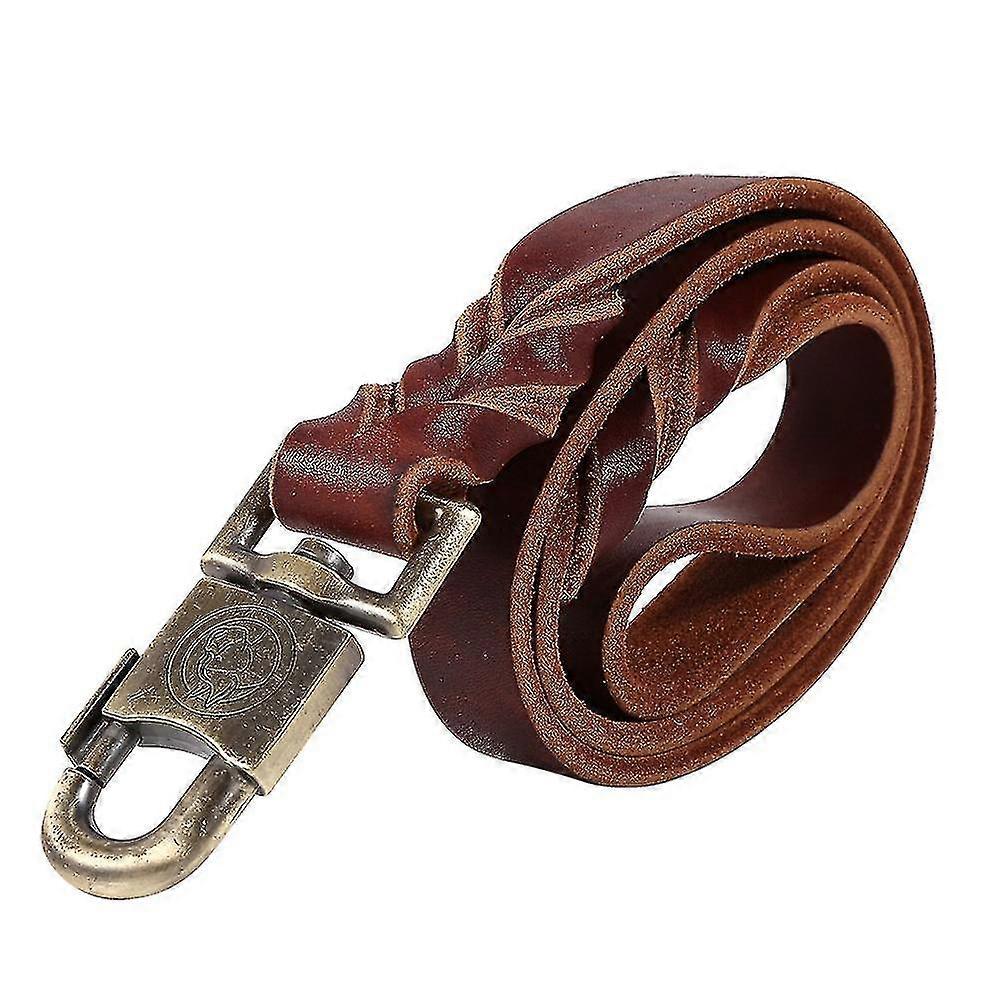 1 Soft Leather Dog Collar & Leash with Braided Chain (2.5x90cm)