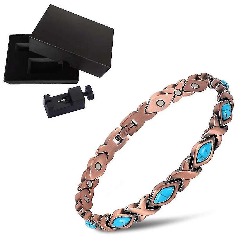 1 Pack Turquoise Pure Copper Bracelet For Women Healing Magnetic Therapy Relieve Arthritis Pain Carpal Tunnel Women Adjustable Bracelet (blue Turquois