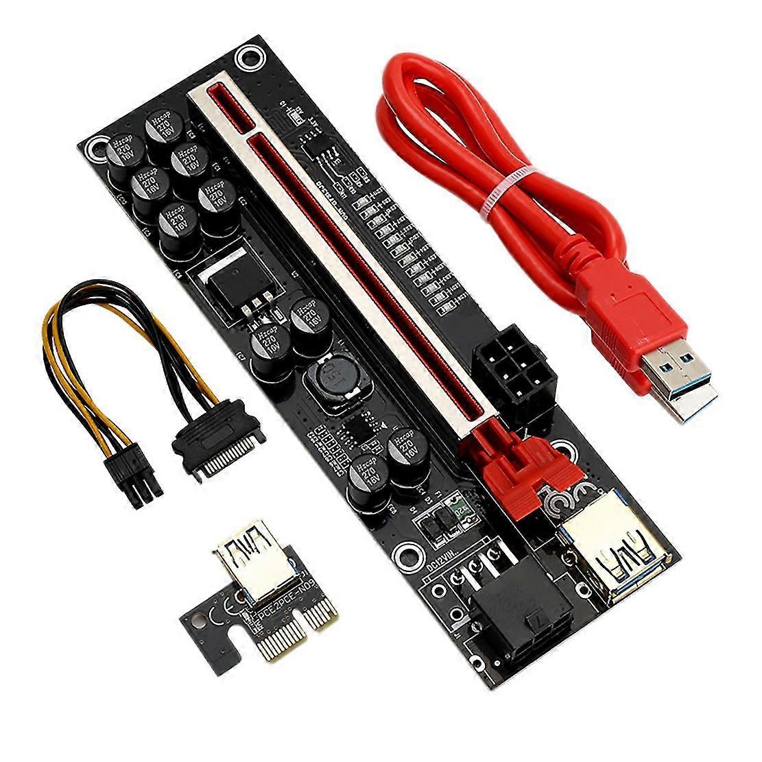 VER011s: The newly updated VER011s riser card is the latest and most advanced solution for setting up GPU mining devices. Applicable to all Windows systems, LINUX and .2-port in 1 power PCIe riser: with the updated USB riser with 2x 6-pin graphics interface (two 6-pin interfaces have different directions), which relieves the motherboard during multi-card access and achieves maximum compatibility with your power supply.Power LED indicators: the power LED indicator ensures safer operation. With the indicator you can determine whether the power supply is working or not. Gold-plated contact ensures connectivity and a long service life.High-quality solid capacitors: high-quality voltage control and overcurrent protection, 10 high-quality solid capacitors for a stable and safe power supply, double protection of your GPU and securing your investment.High-quality cable: the cable has been upgraded and the shielded signal has been improved. 60 cm USB 3.0 cable, soft and easy to place and install. The PCI-E 1x to 16x riser adapter card with multi-layer shielded cable will not weaken the signal within 3 metres.Product name: PCI-E 1X to 16X Riser CardModel: VER011sPower type: 6PINInterface: PCI-E 1X,PCI-E 16X,USB3.0USB cable length: 60cmProduct performance: extension cord graphics card 6P interface (16A power supply capability) to enhance power supplyApplicable system: Lin/XP/ Windows7/8/10 etc.Colour:black+redMaterial:PCB+MetalPackage Contents:1 * PCI-E 16X adapter boards1 * PCI-E 1X riser cards1 * USB cables1 * SATA cableOnly the above package content, other products are not included.Note: Light and different displays may cause the color of the item in the picture a little different from the real thing. The measurement allowed error is +/- 1-3cm.
