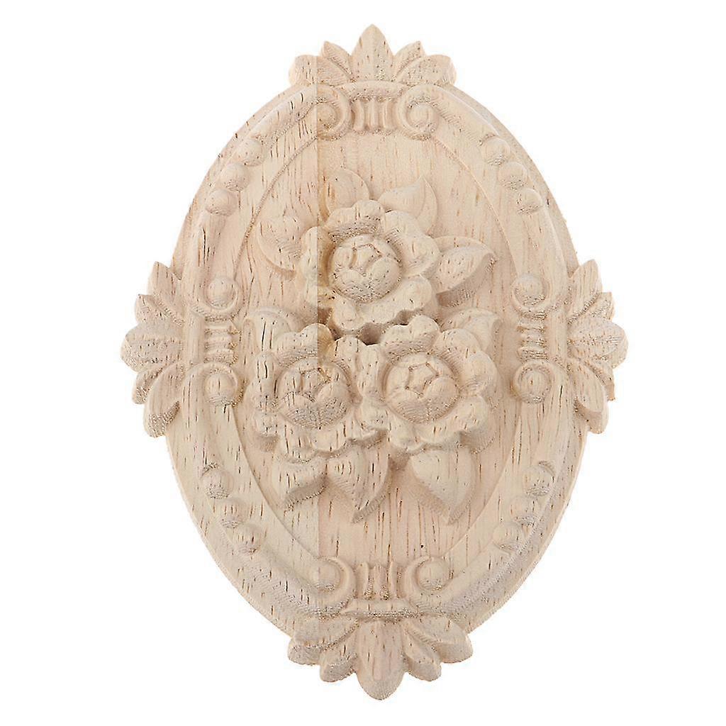1 Piece Oval Unpainted Wood Carved Onlay Applique Furniture European Style for