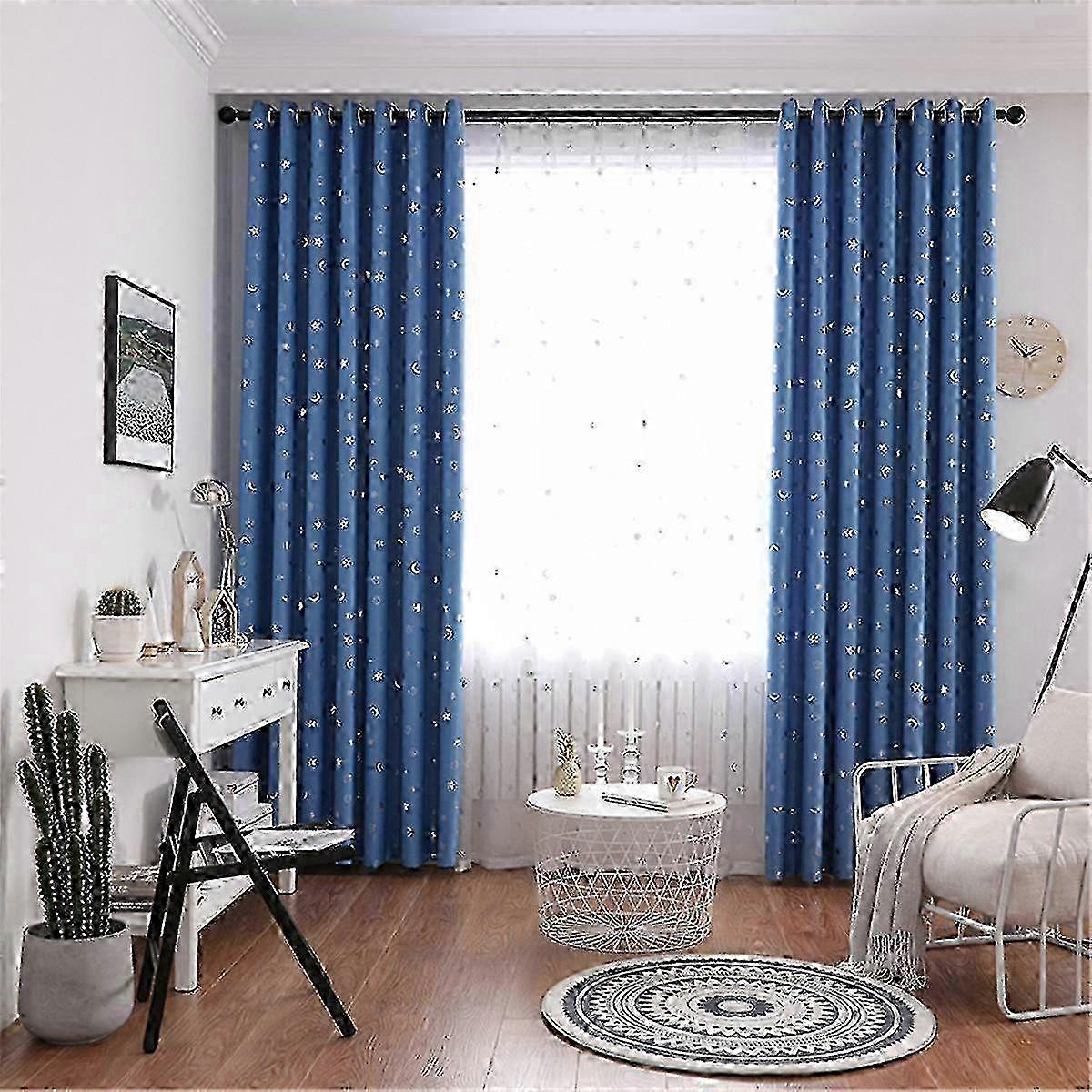 1pc Smiley Star Moon Blackout Fabric Perforated Curtain - Sky Blue - 100*250cm