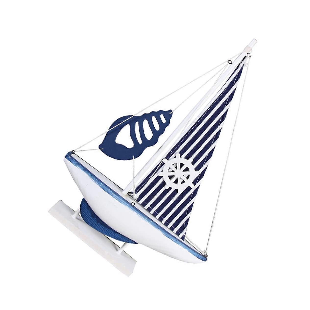 1 piece Mediterranean Sailboat Wooden Model, Elegant Decoration for Home, Blue Retro Design