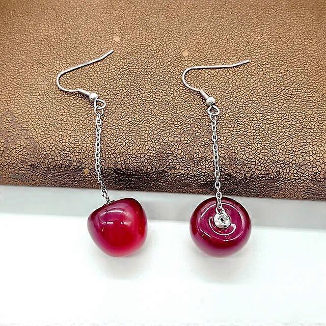 1Pair Cute Cherry Earring Stainless Steel Long Chain Tassel Hammer Stud Hook Earrings Handmade Fashion Y2K Jewelry Birthday Gift