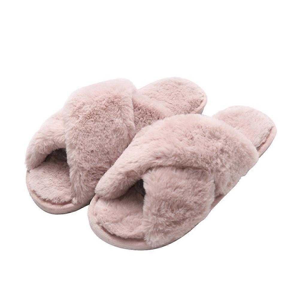 1 Pair Plush Coral Slippers Winter Indoor Slippers for Women Girls Ladies (Pink, Size 38-39)