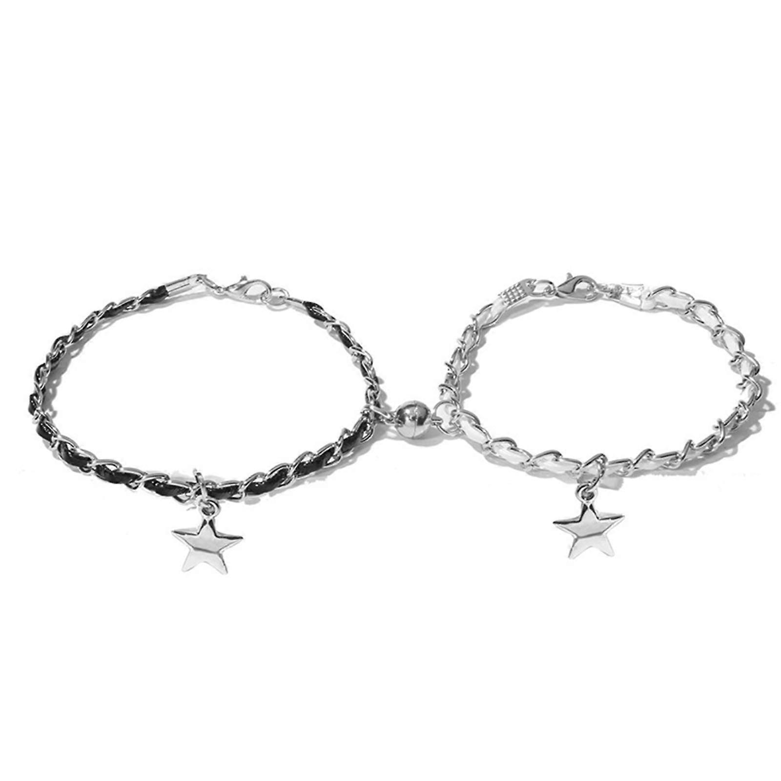 1 Pair Couple Bracelets, Magnetic Five-pointed Star Charm Wristbands Hand Woven Wrist Chains for Everyday Party Wear