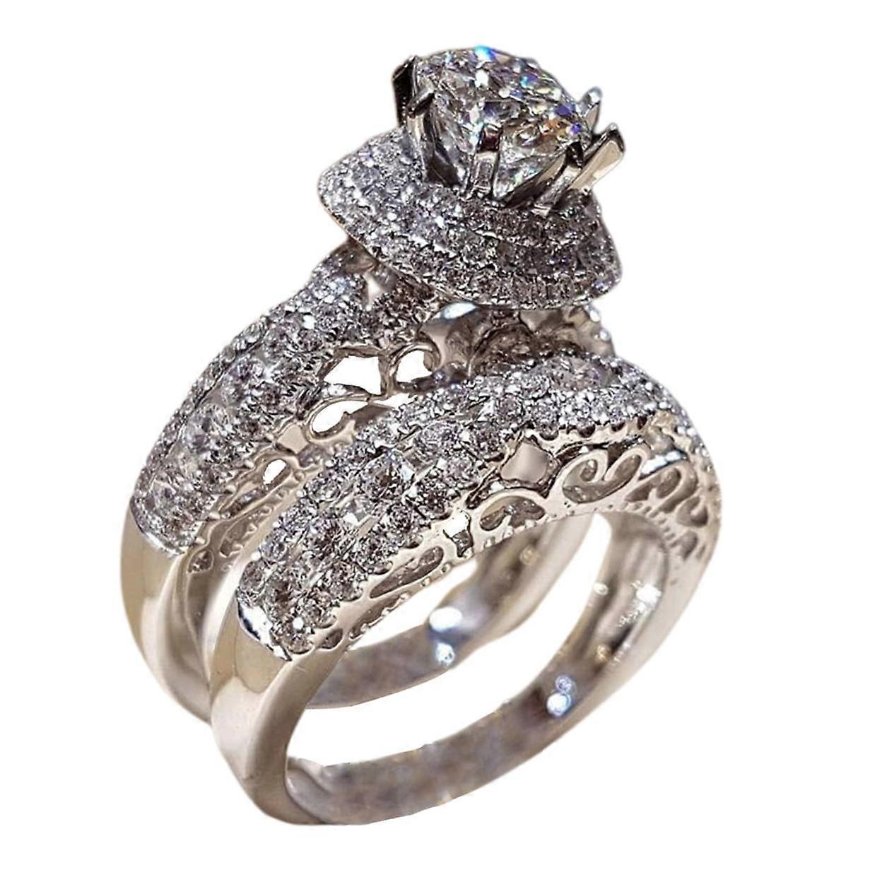 1 Pair Couple Rings Shiny Cubic Zirconia Jewelry Electroplated Exquisite Rings for Wedding