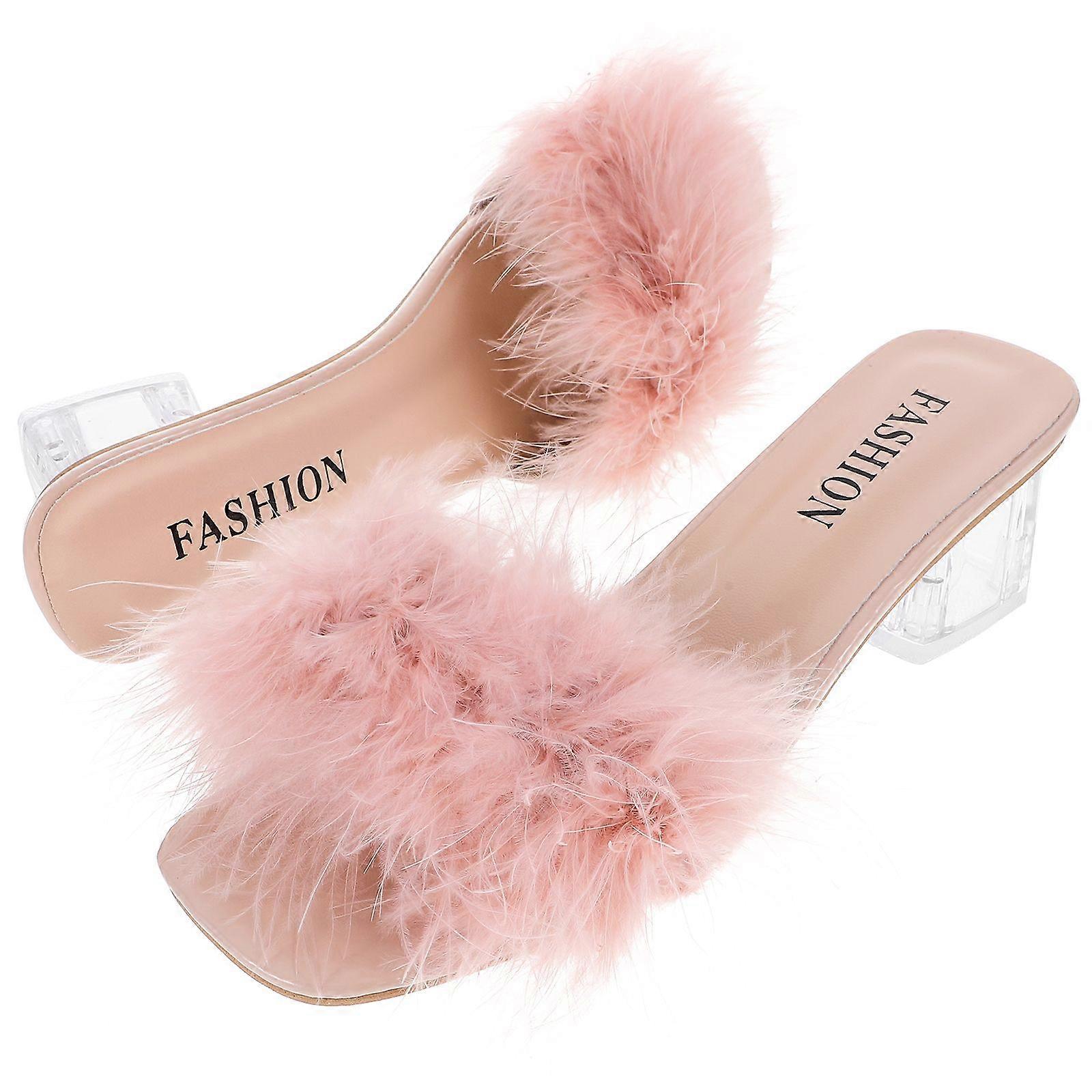 1 Pair Fashion Wool Slipper Breathable Woman Summer Slipper Low-heeled Open Toe Sandals Household Chunky Heel Slipper for Women Wearing (Pink Size 40