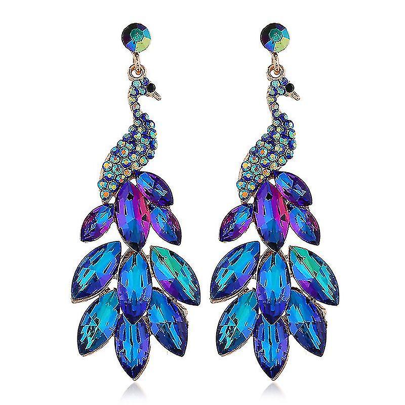 1 Pair Of Ladylike Temperament Peacock Diamond Crystal Super Flash Ear