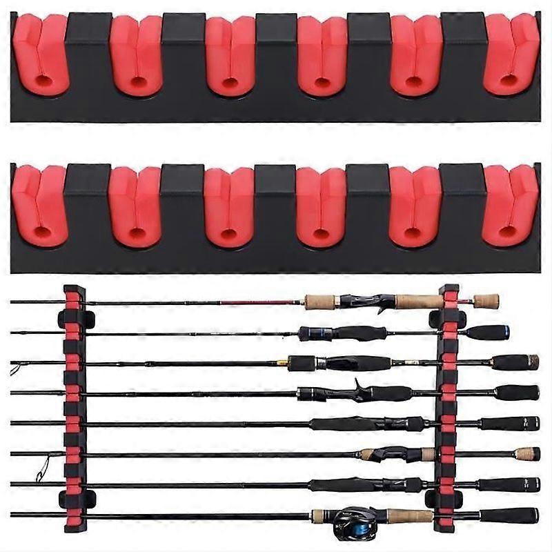 1 Pair Wall Mounted Fishing Rod Holder Fishing Rod Rack 6 Pole Storage Shelf for Wall Garage Boat - Red