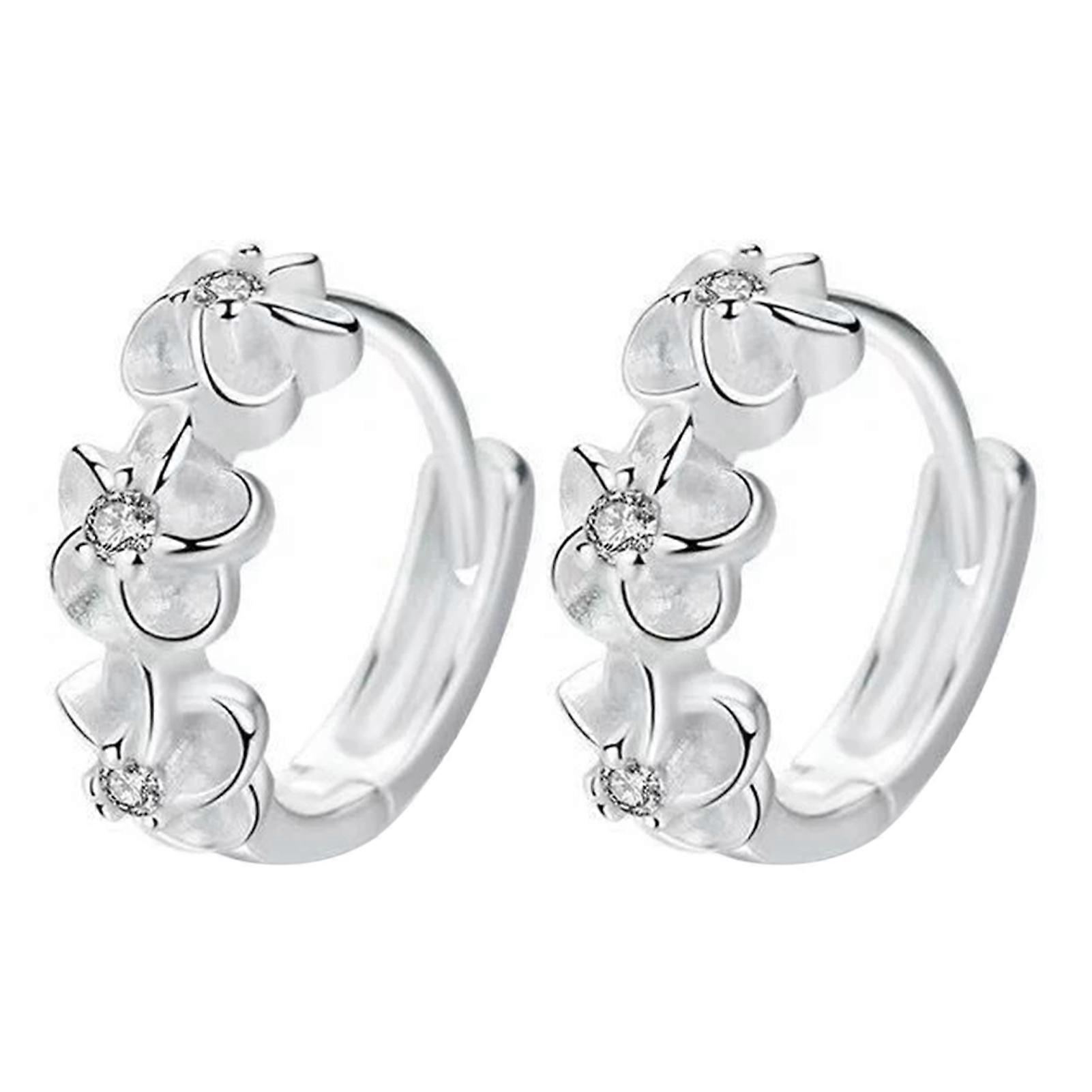 1 Pair Women Hoop Earrings Solid Color Long-lasting Stainless Flower Shape Anti-allergy Women Huggie Earrings Female Accessory