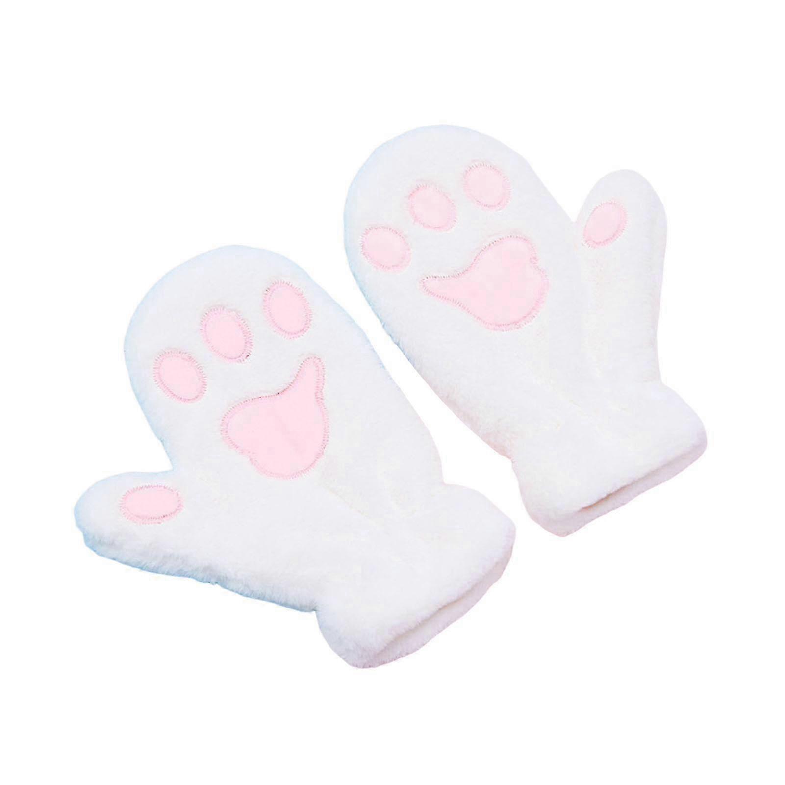 1 Pair Women Winter Mittens Cartoon Cat Paw Shape Thick Plush Anti-slip Heat Retention Outdoor Skiing Cycling Gloves