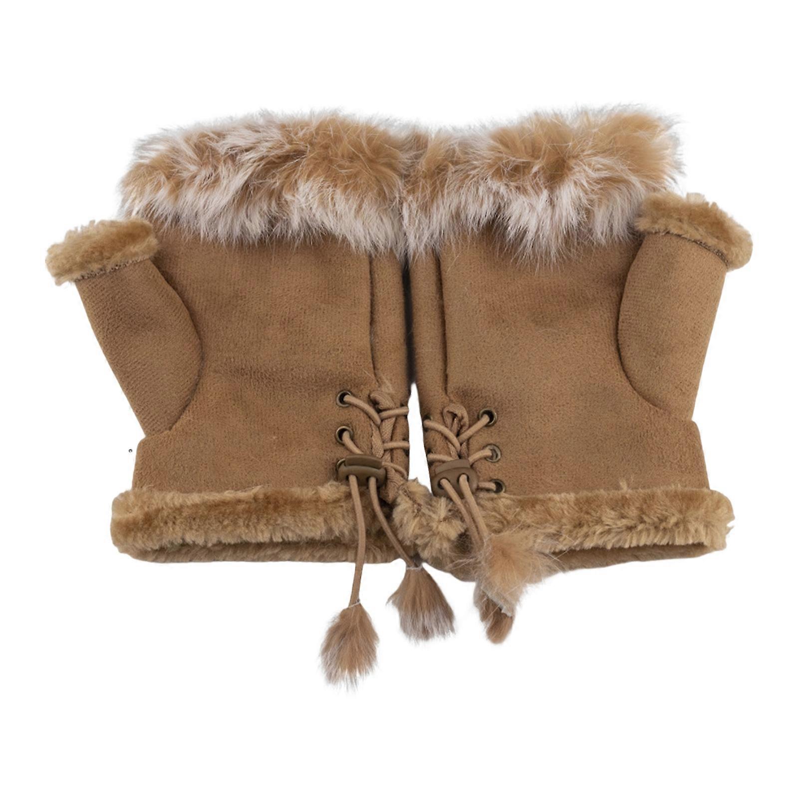 1 Pair Women Winter Mittens Adjustable Drawstring Thick Plush Faux Fur Windproof Anti-slip Student Writing Gloves Keep Warm Fingerless Typing Mittens