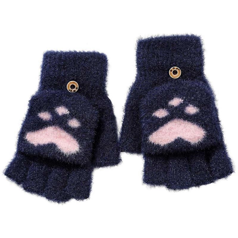 1 Pair Women Gloves Cartoon Cat Claw Half Finger Flip Fluffy Stretchy Keep Warm Super Soft Autumn Winter Women Knitted Writing Mittens for Outdoor