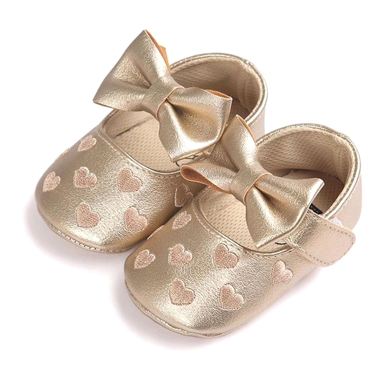 1 Pair Baby Girl Heart Shaped Embroidery Pattern Bow Dress Shoes PU Leather Infant Toddler Prewalker