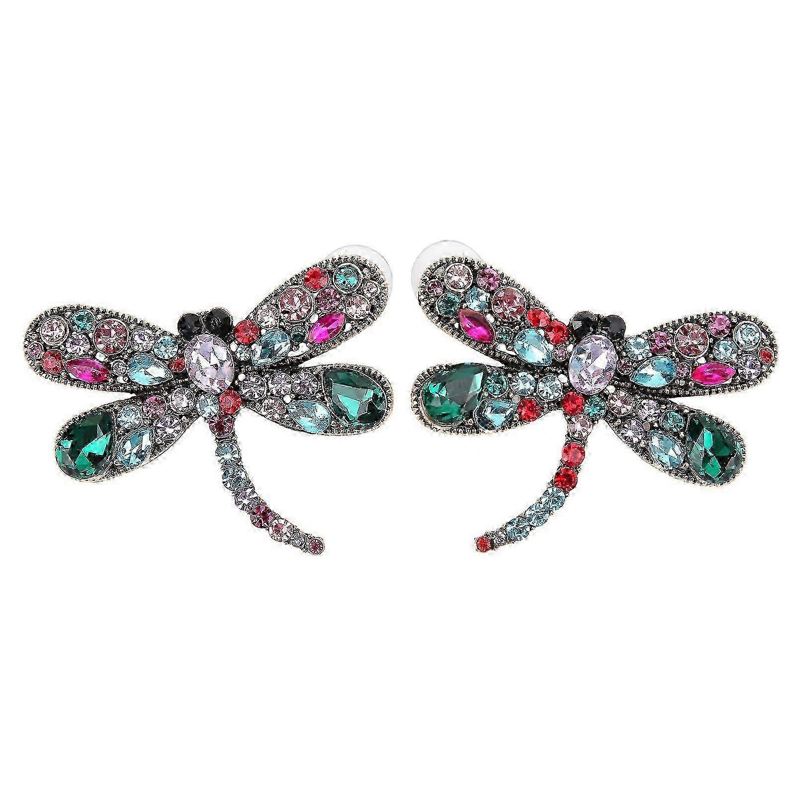 1 Pair Earrings Dragonfly Pattern Diamond Alloy Material Ear Studs DIY Party Decoration Gift