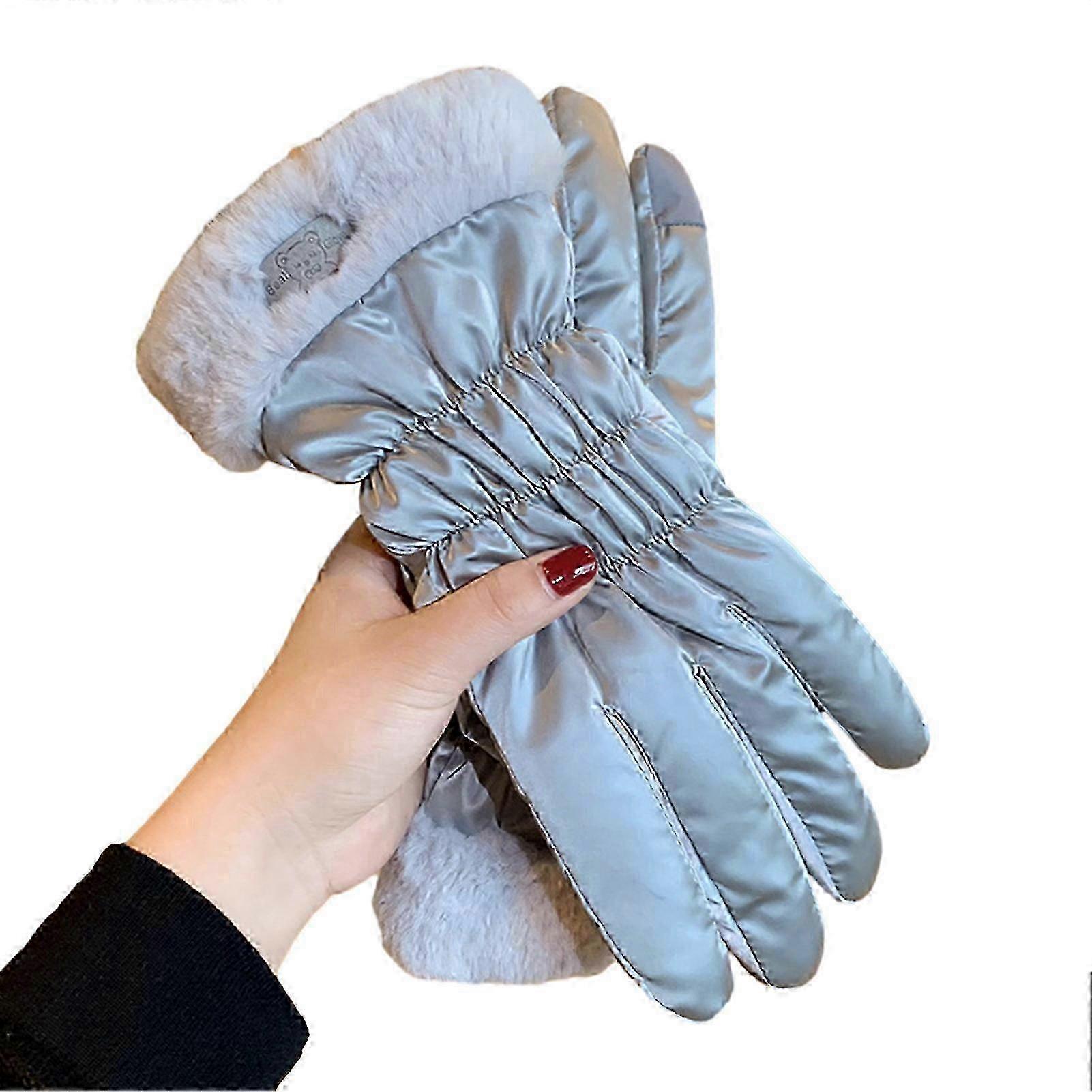 1 Pair Winter Gloves Thick Plush Lining Windproof Warm Cold Resistant Five Fingers Touch Screen Waterproof Anti-slip Soft Lady Riding Cycling Gloves