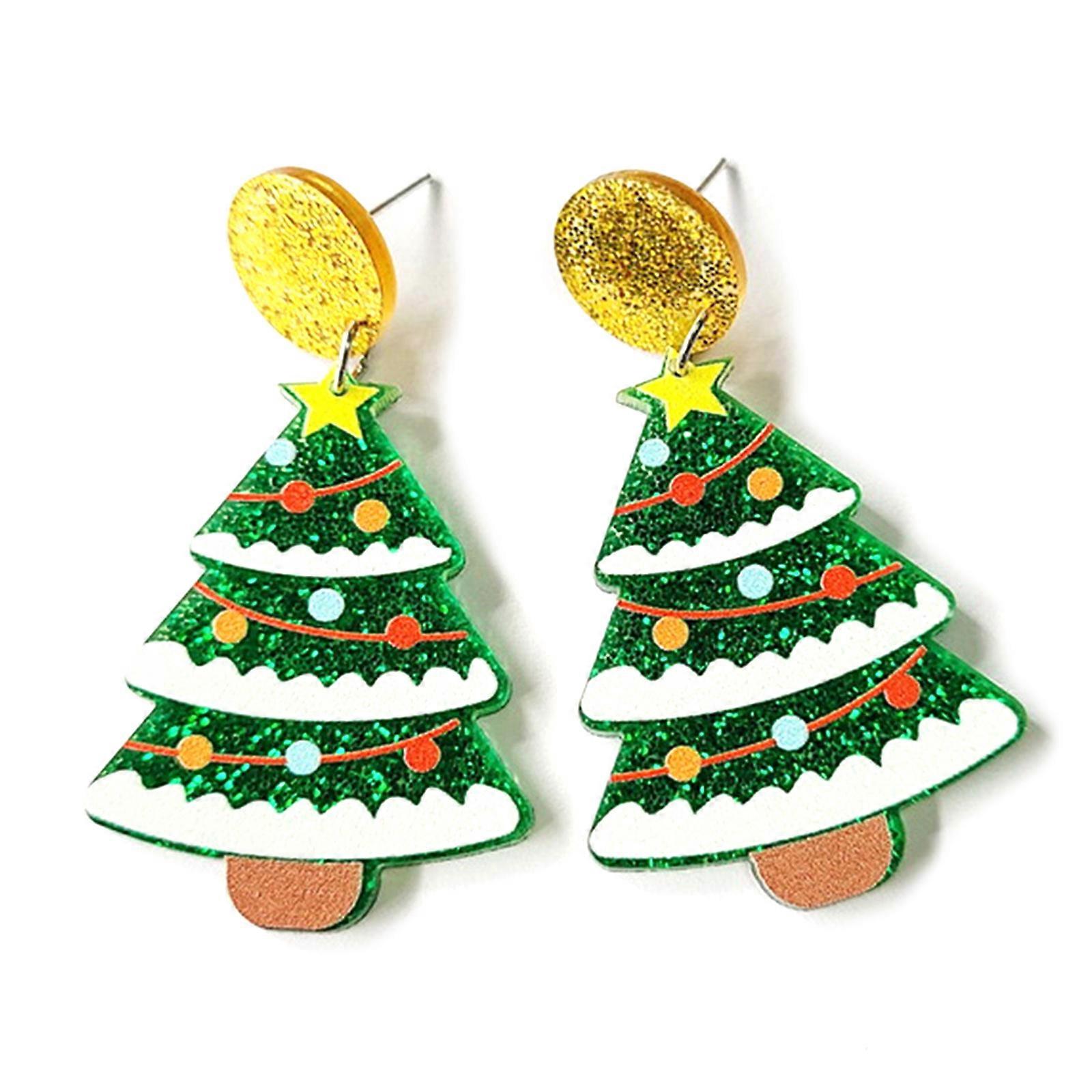 Cute Christmas Earrings Alpaca Christmas Tree Decoration Hat Dinosaur Cactus Earrings Ladies Girls Holiday Jewelry Gift