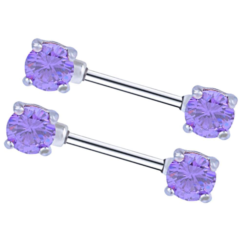 1 Pair Zircon Shield Bar Barbell Nipplerings Stainless Steel 14g Purple
