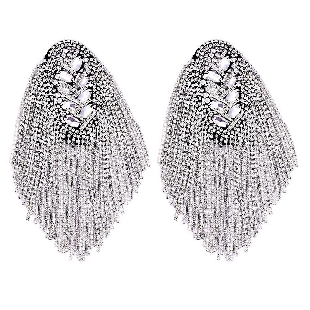 1 Pair Silver Tassel Epaulet Rhinestone Shoulder Board Costume Shoulder Badge Decor Shoulder Mark Fringe Epaulet for Suit