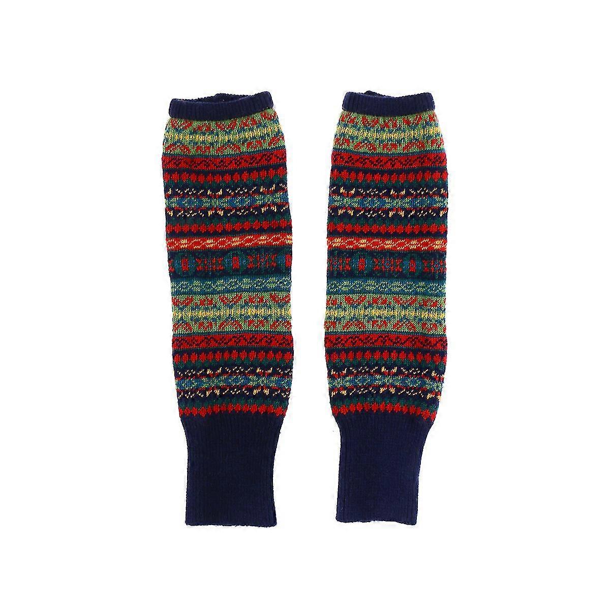 1 Pair Stylish New Womens Boot Socks Knee High Bohemia Winter Knitted Leg Warmers Boot Gaiters Foot Warmer (Bottom Dark Navy)