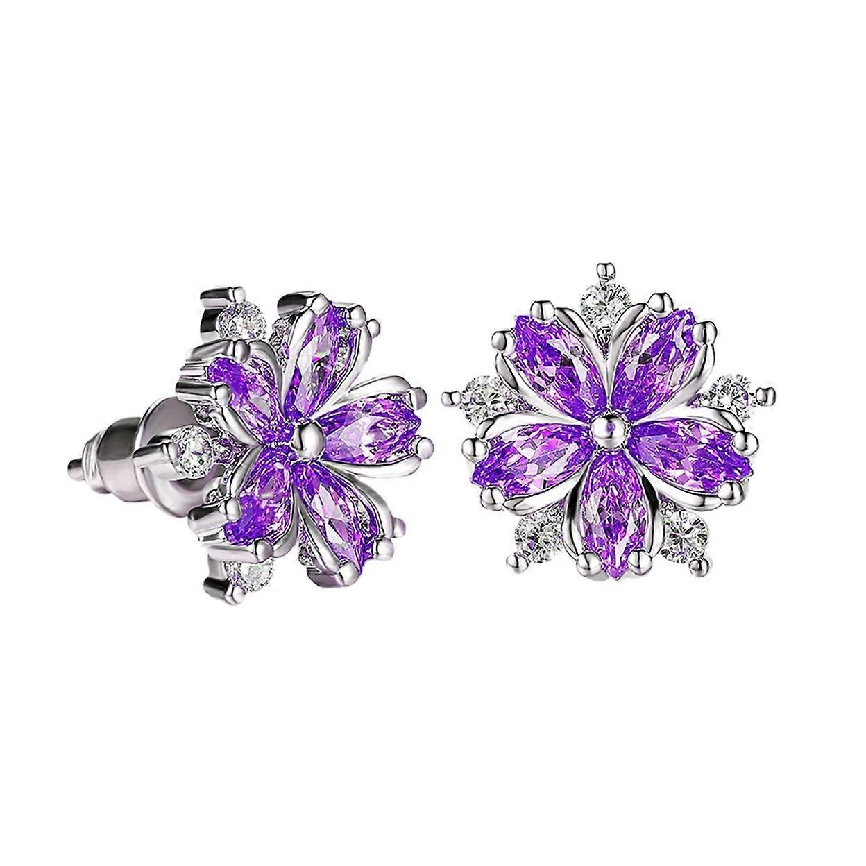 1 Pair Stud Earrings Cherry Decoration Jewelry Sparkling Flower Shape Stud Earrings Birthday Gift