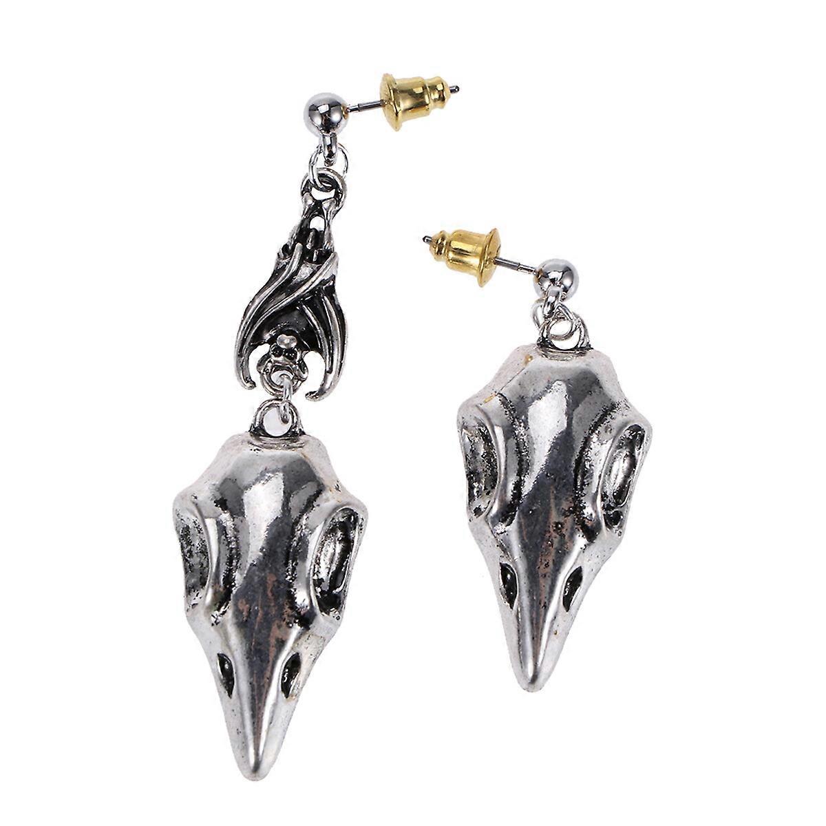 1 Pair Steampunk Crow Head Shape Earrings Fashion Alloy Earrings Punk Jewelry Decor for Women Lady Silver