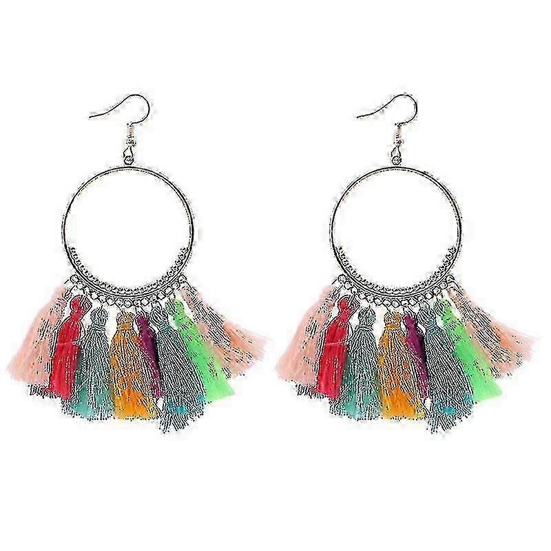 1 Pair Tassels Dangle Earrings Bohemia Dangle Gold Plated Earrings For Women (colorful)