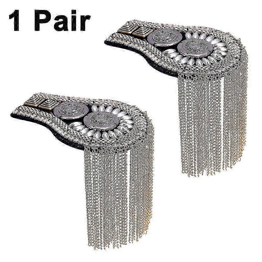 1 Pair Tassel Link Chain Epaulet Shoulder Boards Badge Metal Fringed