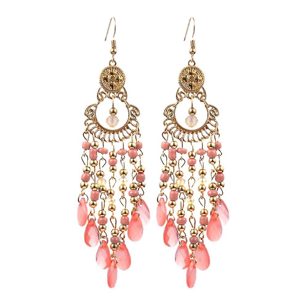1 Pair Drop Earrings High-end Hollow Out Beads Bohemia Style Tassel Women Hook Earrings Dating Jewelry