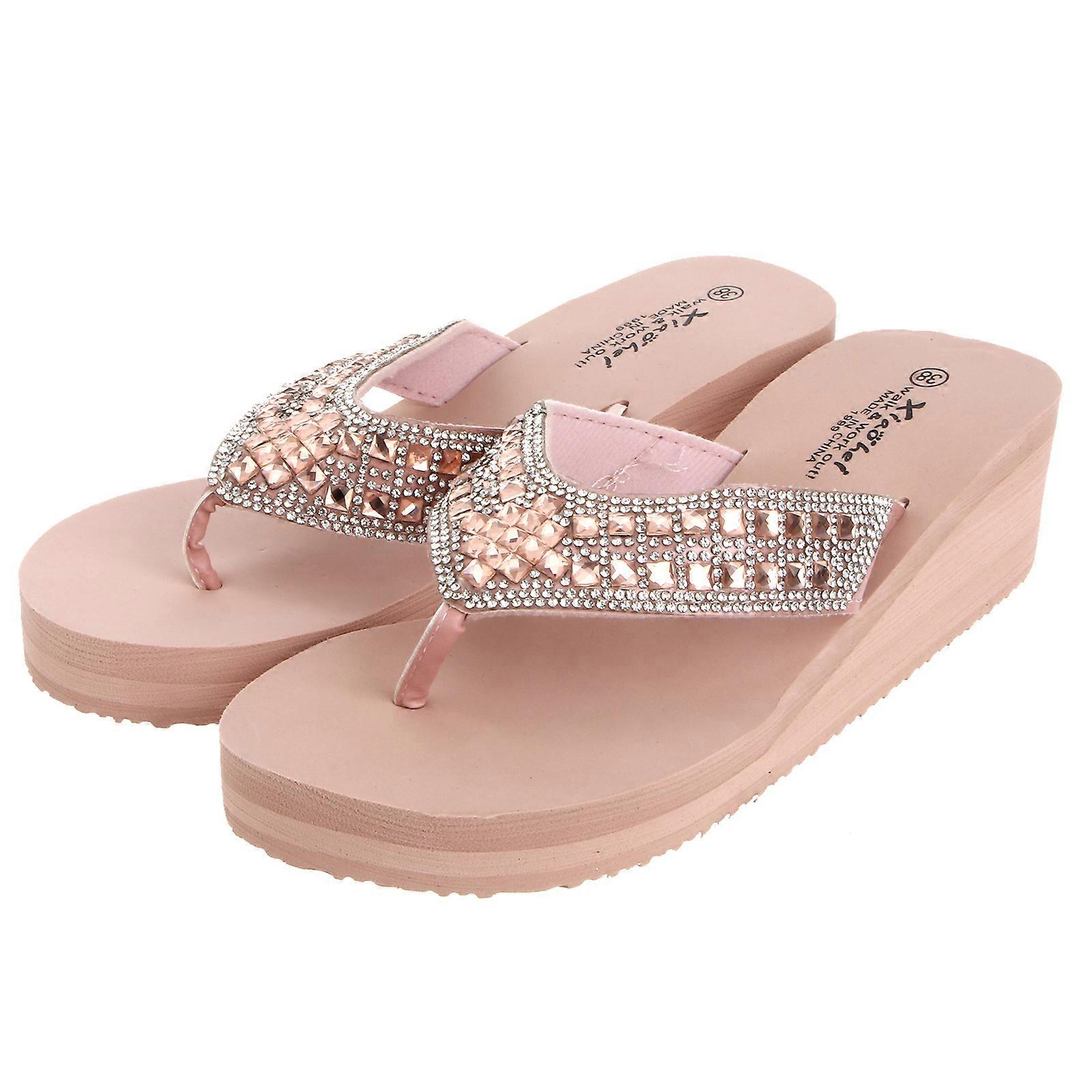 1 Pair Non-slip Beach Shoes Slipsole Shoes Flops Pearl Diamond Shoes for Summer Women Wearing (Pink Size 38 23.5CM, 6.5US, 4UK, 37.5EU, 9.2355Inch)