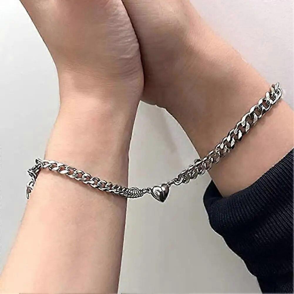 1 Pair Punk Silver Color Chain Couple Bracelet For Women Stainless Steel Romantic Magnet Men Paired Things Fashion Jewelry N1F5