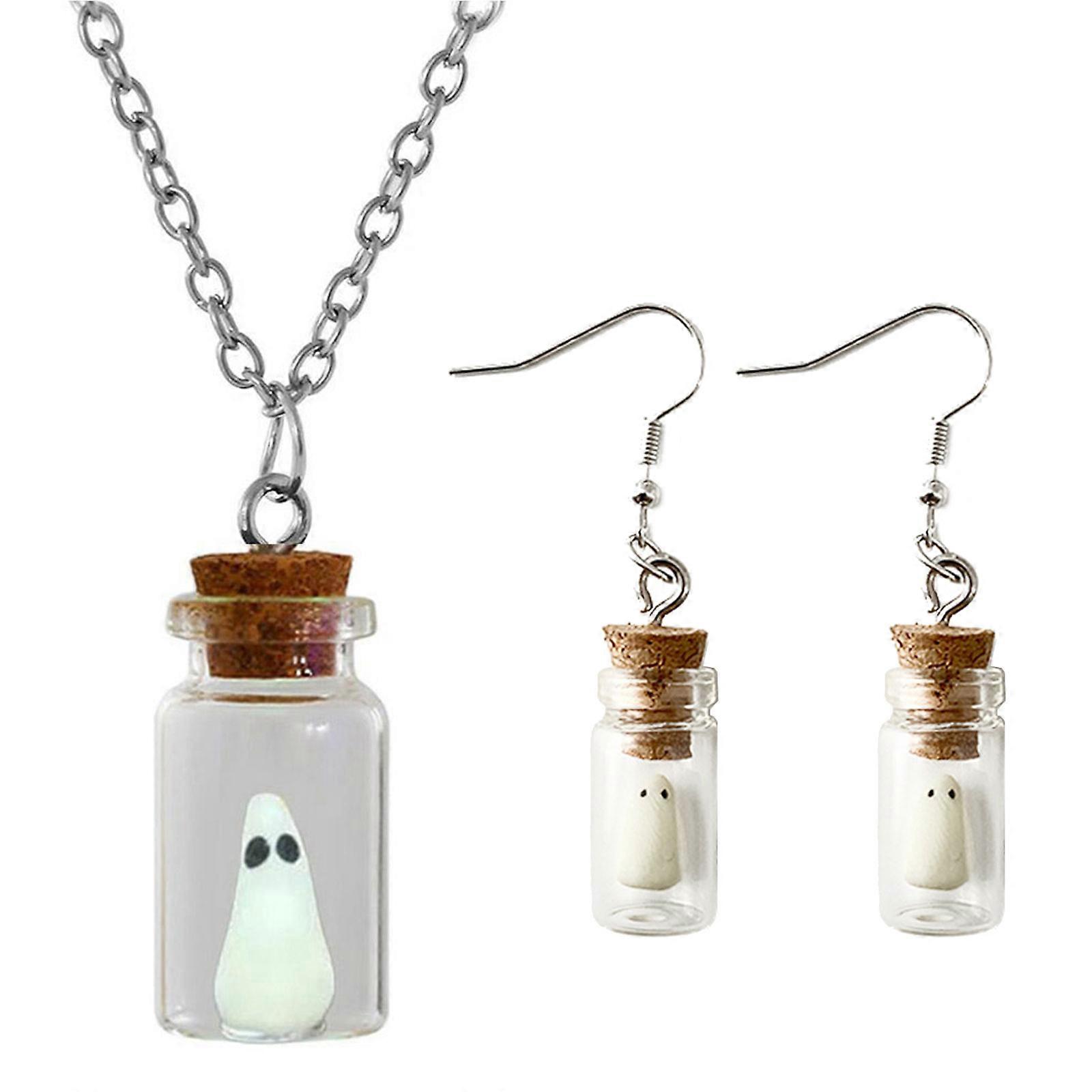 1 Pair Halloween Acrylic Luminous Specter Ear Hooks Earrings for Women Retro Necklace Clear Bottle Handmade Earrings