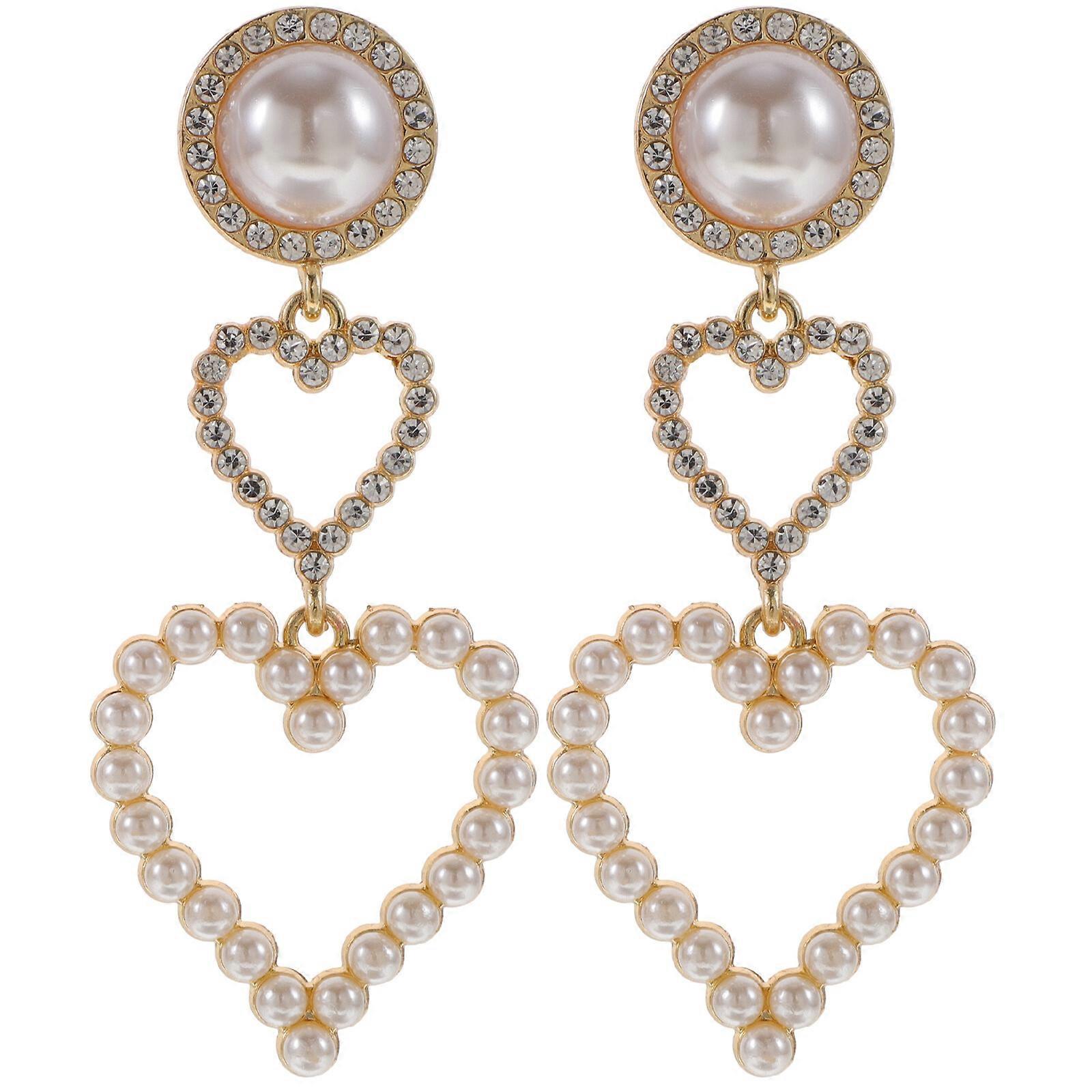 1 Pair Heart Earring Women Rhinestone Earring Simulated Pearl Pendant Earring Jewelry