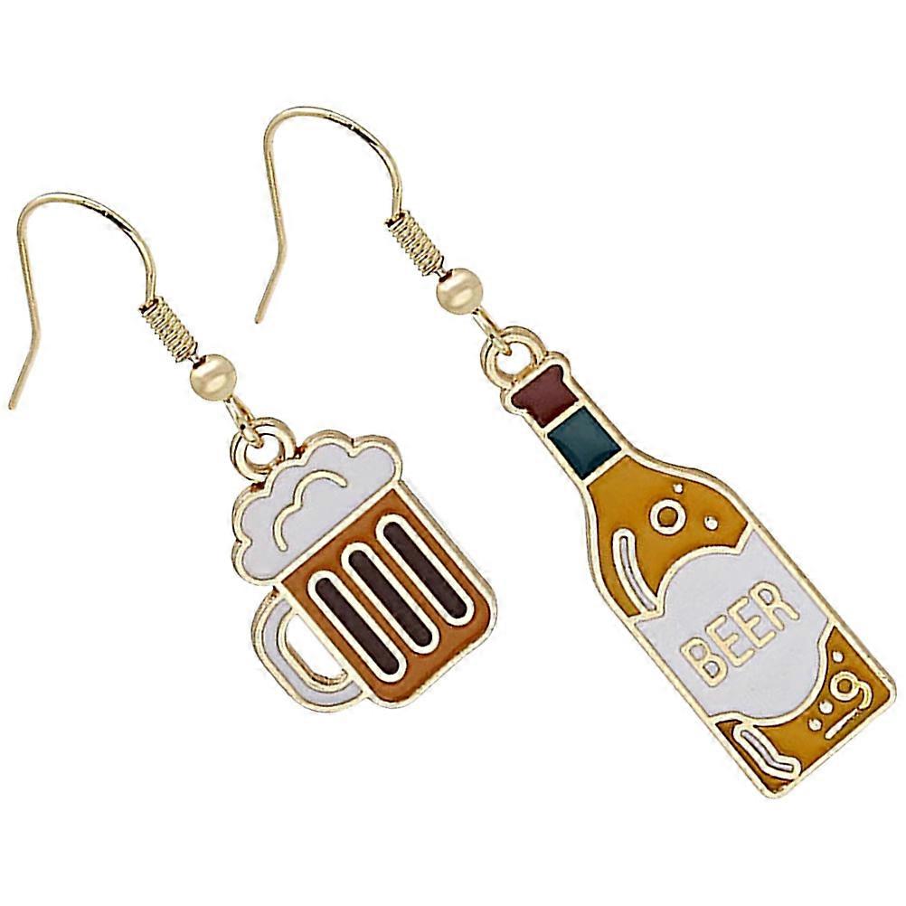 1 Pair Beer Earrings Asymmetrical Beer Cup Beer Bottle Earrings for Women Teen Girls