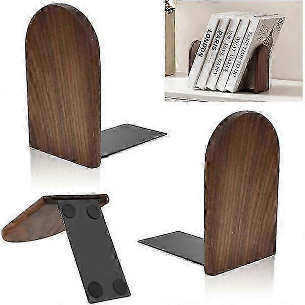 1 Pair Bookends, Walnut Wood Bookends, Non-Slip Bookends, Heavy Duty Wooden Bookend Support Natural Walnut-Round-